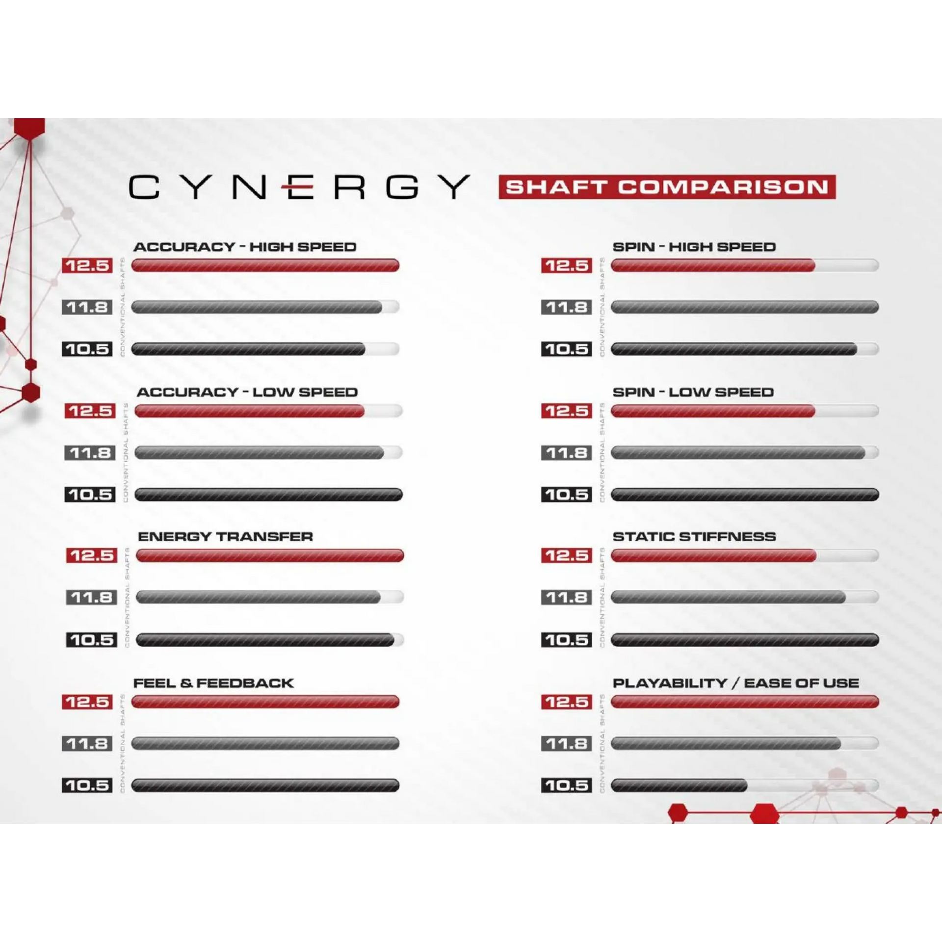 Tacos disponíveis com a vara de carbono Cynergy 11.8 mm ou 12.5 mm.